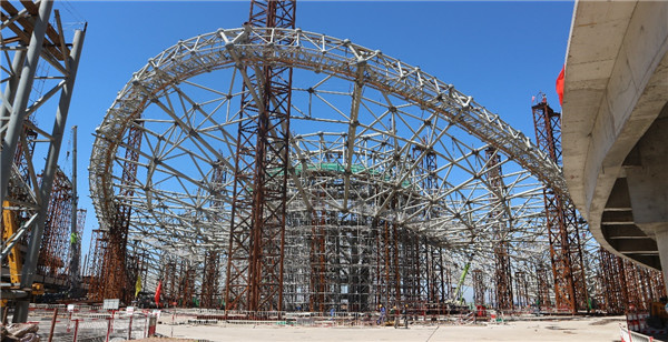 北京大兴国际机场钢屋盖面积大、跨度大、曲面造型重大、下部混凝土楼层滋扰多,屋盖施工妄想工期仅3个月,施工难度很是大。