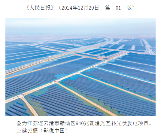 12月29日,《人民日报》头版聚焦点赞横店非凡国际渔光互补光伏电站。